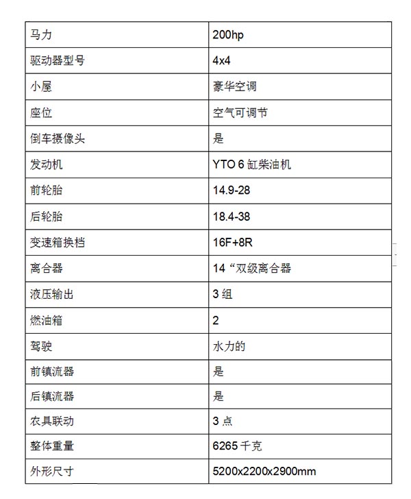 拖拉机200马力 参数